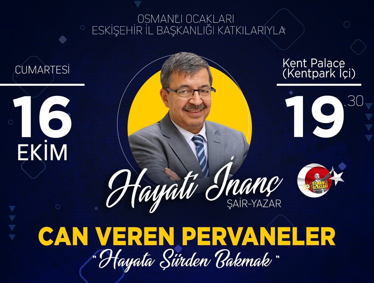 Eskişehir Osmanlı Ocakları İl Başkanlığı tarafından düzenlenen etkinlikle eğitimci-yazar Hayati İnanç, “Can Veren Pervaneler” konulu söyleşisi ile Eskişehirlilerle ile buluşuyor.