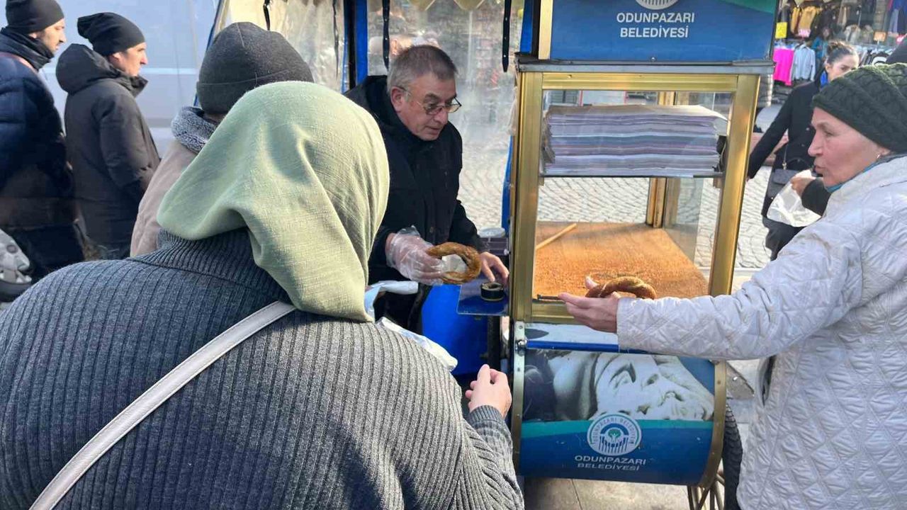 Eskişehir’de hayırsever bir vatandaş tarafından tezgaha verilen 500 simit bedava dağıtıldı.