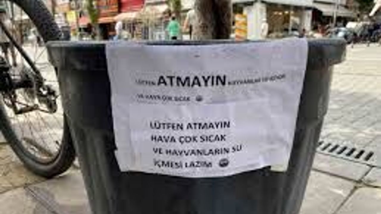 Eskişehir'de hayvansever bir vatandaşı su koyduğu kabın sürekli çöpe atılması nedeniyle bir saksının üzerine astığı, "Lütfen atmayın. Hayvanlar su içiyor ve hava çok sıcak. Hayvanların su içmesi" yazılı kibar uyarısı dikkat çekti.
