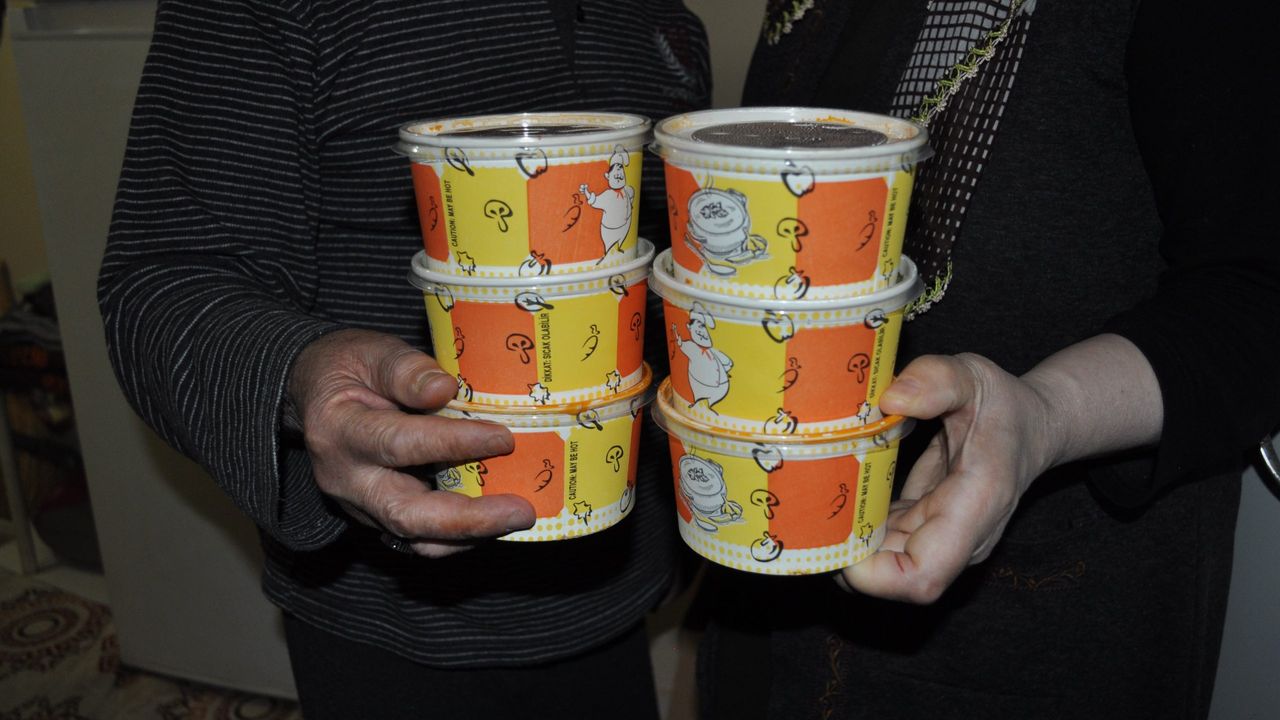 “Allah razı olsun. Her zaman geliyorlar, halimizi hatırımızı soruyorlar. Şimdiye kadar beni hiç yalnız bırakmadılar. Hamdolsun, bugünümüze şükürler olsun. Benim sol tarafım felçli. Eylül ayında felç geçirdim. Ayşegül kızım yardım etti. Kızımız 2-3 Ramazandır bizi hiç yalnız bırakmadı, hep yemek getirdi. Bu aylarda hiç yanımızdan eksik olmadı. Eşimle ortaklaşa bir şeyler yapmaya çalışıyoruz ama böyle hazır yemek gelmesi bizim için çok daha iyi. Benim eşim de 6 yaşındayken çocuk felci geçirdiği için tek eli çalışıyor, bir elini kullanamıyor zaten. Patatesi ve soğanı o soyamıyor, ben soyuyorum. Kendi kendimize bir şeyler yapmaya çalışıyoruz ama olduğu kadar.”