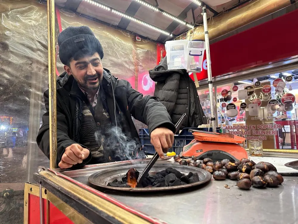 Yılbaşı kalabalığında kazanç elde etmek için kestane satışı yapan Cengiz Samurah, “Yılbaşında çalışmaya devam ediyorum. Biz işimizin başındayız. Yeni yıla ait güzel bir iş diliyoruz. Herkesin yeni yılını kutluyoruz. Kavgasız, sağlıklı, mutlu bir yıl geçmesini istiyoruz” şeklinde konuştu.