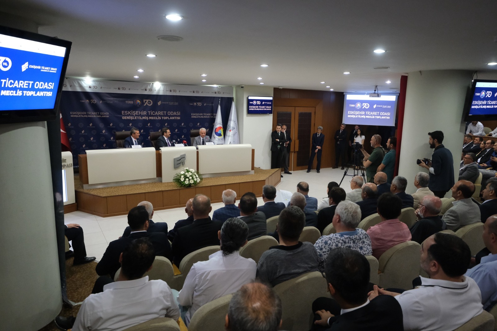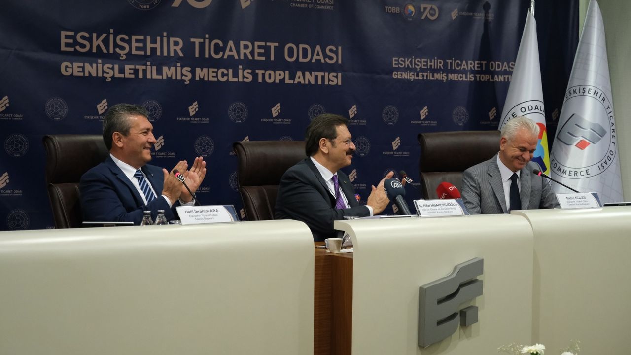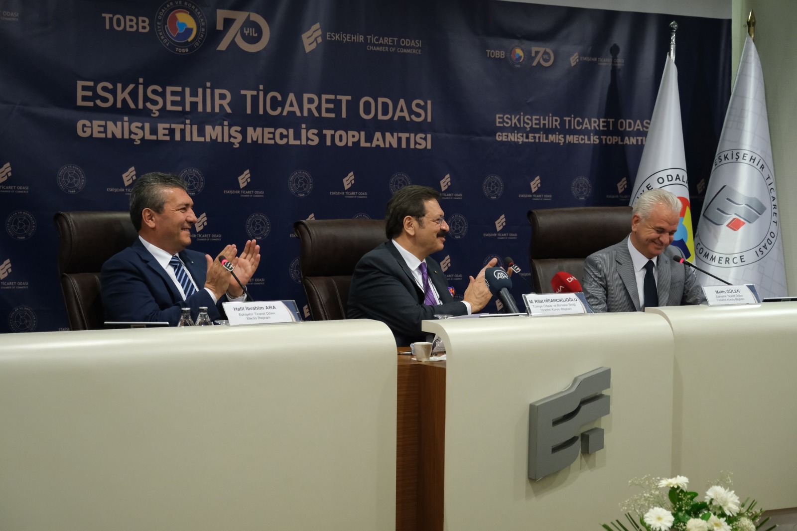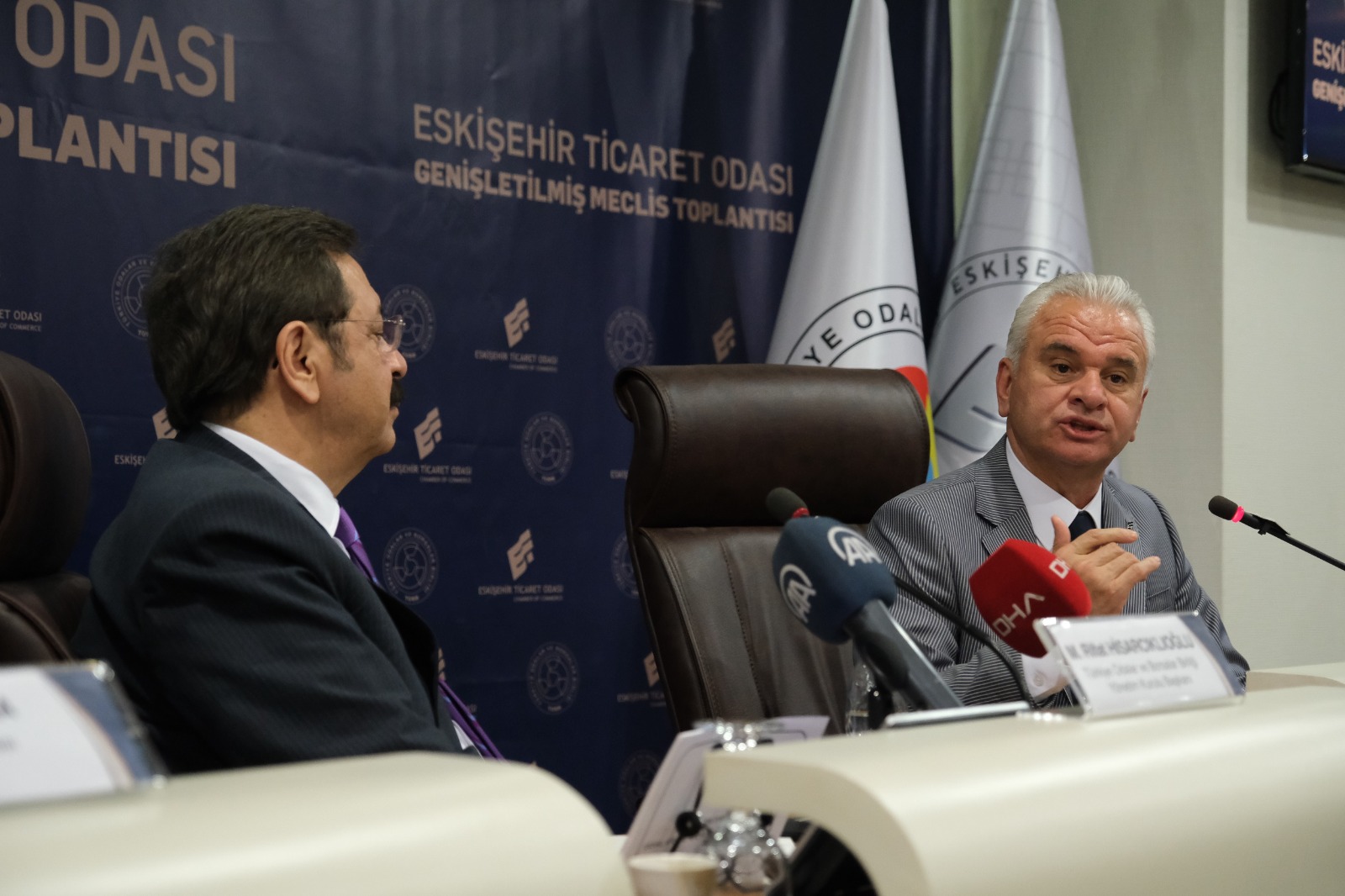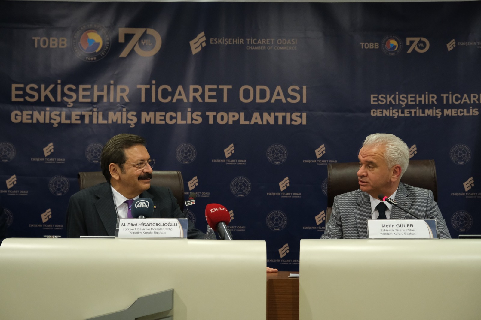 Toplantıda konuşan TOBB Başkanı M. Rifat Hisarcıklıoğlu Eskişehir’in üniversite, turizm, sanayi ve yüksek teknoloji şehri olduğunu belirterek, Türkiye’de üretilen 54 üründe Eskişehir’in lider olduğunu söyledi. Eskişehir’in gelişmesi ve kalkınması için çalışan Eskişehir Ticaret Odası Başkanı Metin Güler’e, Meclis Başkanı Halil İbrahim Ara’ya yönetim kuruluna, meclis ve organ üyelerine ve oda çalışanlarına teşekkür eden Hisarcıklıoğlu, Eskişehir’in Batı Anadolu’nun çekim merkezi haline geldiğini söyledi.