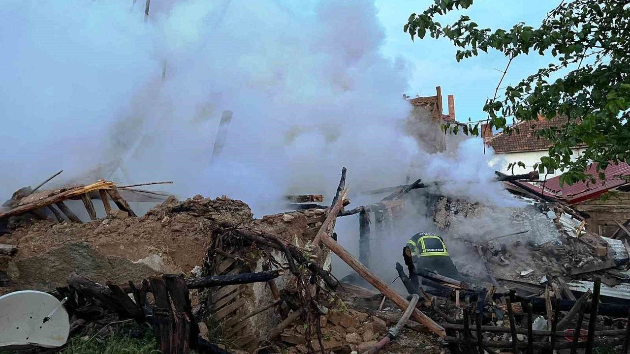 Kütahya’nın Hisarcık ilçesi Şeyhler köyünde çıkan yangın sonucu iki katlı ahşap ev kullanılmaz hale geldi.