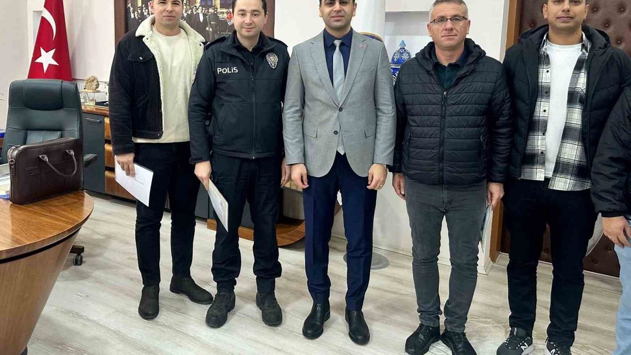 Kaymakam Muhammet Samet Bahar, İlçe Emniyet Amiri Ayhan Istık, Polis Memurları Serdar Yumrutaş, Emre Ceran, Sercan Akgün ve Mehmet Tunahan Ceyhan’a ilçede meydana gelen olayların aydınlatılmasında, ilçenin huzur ve güvenliğinin sağlanmasında göstermiş oldukları özveriden dolayı teşekkür ederek, başarı belgesi takdim etti.