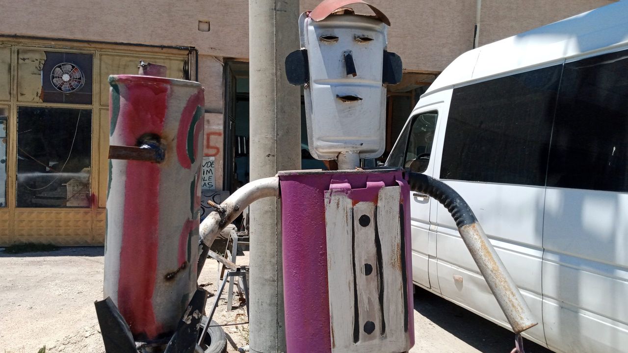 "Bu heykeli eski çıkan çürük egzozlardan yaptık"