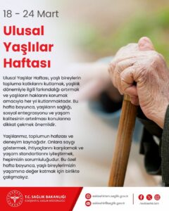 Eskişehir il Sağlık Müdürü Doç. Dr. Yaşar Bildirici, 18-24 Mart Yaşlılar Haftası kapsamında yaptığı açıklamada, yaşlı bireylerin toplumda hak ettikleri değeri görmelerinin ve kimseye muhtaç olmadan yaşamlarını sürdürebilmelerinin en önemli sorumluluklarımızdan biri olduğunu belirtti.