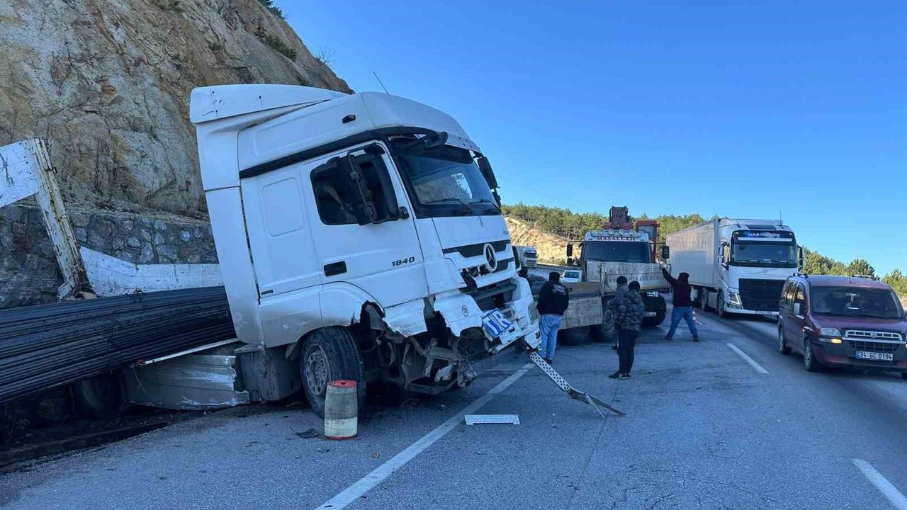 Afyonkarahisar-Ankara karayolunda 28 ton inşaat demiri yüklü tır kayarak refüje girdi. Şans eseri ölen ya da yaralananın olmadığı olayda dorseden kayan demirler tırın kupasını parçalarken, karayolunun bir yönünde trafik durma noktasına geldi.