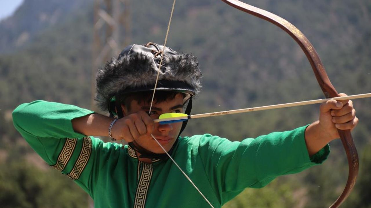 Eskişehir'in Sarıcakaya ilçesinde tarla ve boş toprak arazilere babasıyla kurduğu alanlarda at üzerinde ok atarak uluslararası şampiyonalarda derece elde eden 15 yaşındaki İsmail Mert Yıldırım, 7 yıldır daha iyi dereceler elde etmek için çalışıyor.