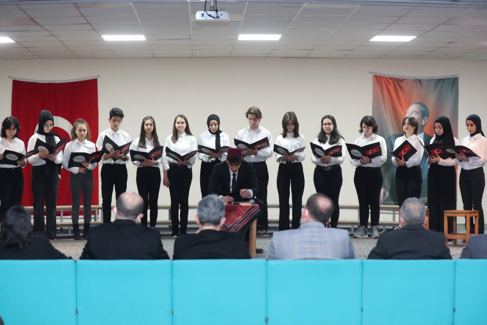 Program saygı duruşu ve İstiklal Marşımızın okunmasıyla başladı. Atatürk Lisesi Müdürü Yakup Tutkun’un günün anlam ve önemini belirten konuşmasının ardından Atatürk Lisesi öğrencileri tarafından “İstiklal Yolunda Hakkın Sesi Mehmet Akif” konulu tiyatral gösterisi, “İstiklal Marşı Nedir?” adlı oratoryo ve müzik dinletisi sunuldu.