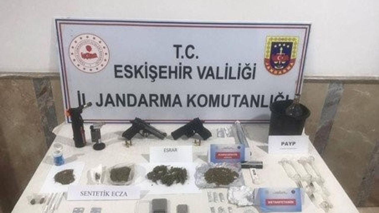 Edinilen bilgilere göre, İl Jandarma Komutanlığı ekipleri tarafından Odunpazarı İlçesi’nde ikamet eden 6 şahsın evlerinde uyuşturucu madde bulundurdukları ve satmaya çalıştıkları öğrenildi. İl Jandarma Komutanlığı’na bağlı Kaçakçılık ve Organize Suçlarla Mücadele (KOM) Şube Müdürlüğü ve Odunpazarı İlçe Jandarma Komutanlığı ekipleri tarafından şahıslara ait evlere yapılan operasyonda, 2 adet ruhsatsız tabanca, 7 adet tabanca mermisi, 54,6 gram esrar, 10 adet payp, 13,4 gram metamfetamin, 18 adet sentetik ecza hapı, 2 adet mini hassas terazi, 53,1 gram bonzai, 58 adet çarşaf kağıt ve 1 adet çalıntı motosiklet ele geçirildi.
