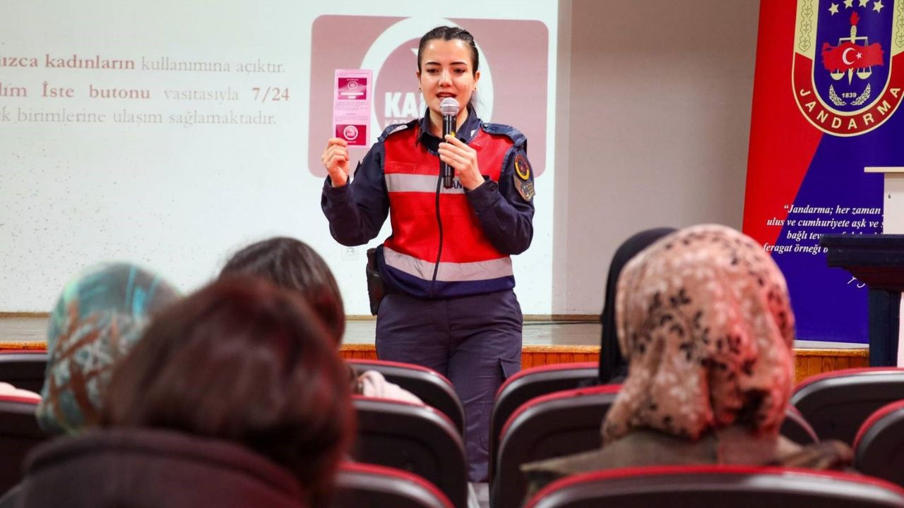Eskişehir'de jandarma ekiplerince düzenlenen seminerde katılımcılara, kadına yönelik şiddet ile birlikte çeşitli konular hakkında bilgi aktarıldı.