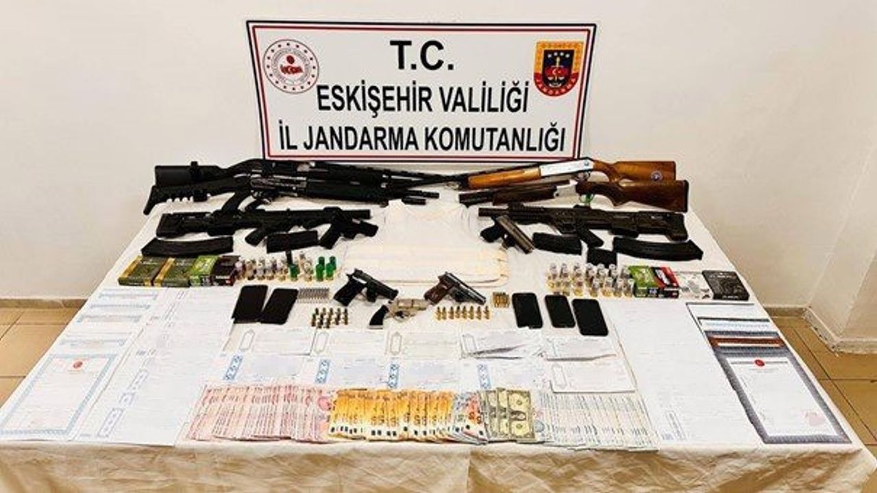 Eskişehir İl Jandarma Komutanlığı Kaçakçılık ve Organize Suçlarla Mücadele Şube Müdürlüğünce (KOM) yapılan çalışmalarda, Eskişehir’de 7 şahsın kazanç elde etmek amacıyla baskı, cebir ve şiddet yolu ile mağdurlara zorla senet imzalatarak borçlandırdıkları, mağdurların gayrimenkulleri ile araçlarını üzerlerine geçirdikleri, zorla nakit paralarını aldıkları yönünde duyum alındı. Edinilen bilgiye göre, şüpheliler hakkında yapılan araştırmada, şahıslara senetle borç para verdikleri, cebir ve şiddetle borçları katladıkları, mağdurların gayrimenkulleri ile araçlarını üzerlerine geçirerek tefecilik yaptıklarının tespit edilmesi amacıyla, adli makamlardan alınan arama kararına istinaden, KOM Şube Müdürlüğünce, Seyitgazi, Odunpazarı, Tepebaşı ve Mahmudiye İlçe Jandarma Komutanlığı ekiplerince “Şehit J.Asb.Kd.Bçvş.Hasan Bozkurt” operasyonu icra edildi. Faaliyet kapsamında şüphelilerin evlerinde ve araçlarında yapılan aramada; 1 adet balistik yelek, 5 adet muhtelif tabanca, 6 adet otomatik av tüfeği, 9 adet şarjör, 236 adet fişek, 81 adet mağdurlara ait imzalı senet, 1 adet sahte dolar, 50 adet boş noter mühürlü resmî belge, suçtan elde edildiği değerlendirilen 93 bin TL değerinde para ele geçirildi.