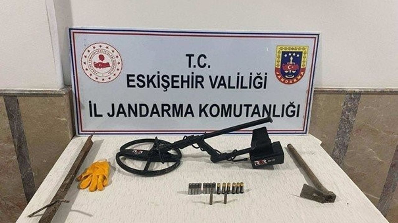 Eskişehir İl Jandarma Komutanlığı Kaçakçılık ve Organize Suçlarla Mücadele Şube Müdürlüğü (KOM) ekiplerince, Odunpazarı ilçesi mülki sınırları içerisinde kaçak kazı yapılacağı bilgisi alındı. Odunpazarı İlçe Jandarma Komutanlığı ve KOM Şube Müdürlüğü ekiplerince, konuyla ilgili çalışma başlatıldı. Ekiplerce, 3 şüpheli şahıs kaçak kazı yaparken suçüstü yakalandı. Kazı alanında yapılan inceleme ve araştırmada, 40 santimetre genişliğinde, 50 santimetre derinliğinde 3 adet çukur açıldığı tespit edilirken olay yerinde; 1 adet dedektör, 1 adet keser, 1 adet köşebent demir, 14 adet kalem pil, 1 adet paslanmış 7.62 milimetre çapında fişek, 1 adet paslanmış kovan ve 1 adet eldiven ele geçirildi. Eskişehir Cumhuriyet Başsavcılığı’nca 3 şüpheli hakkında soruşturma başlatıldı.