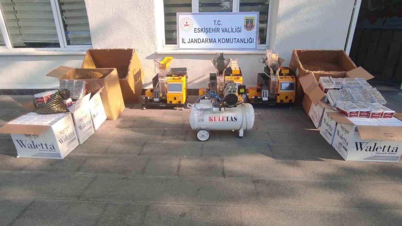 Edinilen bilgilere göre, İl Jandarma Komutanlığı’na bağlı Kaçakçılık ve Organize Suçlarla Mücadele (KOM) Şube Müdürlüğü ekiplerince Odunpazarı İlçesi’nde kaçak yollardan temin ettiği bandrolsüz ve hologramsız kaçak sigaraları sattığı belirlenen şahsa yönelik çalışma gerçekleştirildi. KOM Şube Müdürlüğü ve Odunpazarı İlçe Jandarma Komutanlığı ekipleri tarafından Eskişehir Cumhuriyet Savcısı’nın koordinesinde şüpheli şahsın iş yerine operasyon düzenlendi. Yapılan aramalarda, 3 adet elektrikli sigara sarma makinası, 1 adet kompresör makinesi, 85 kilogram kıyılmış tütün, 40 bin 200 adet makaron, 19 bin 20 adet içi tütün doldurulmuş makaron, 3 bin 478 adet bandrol ele geçirildi.
