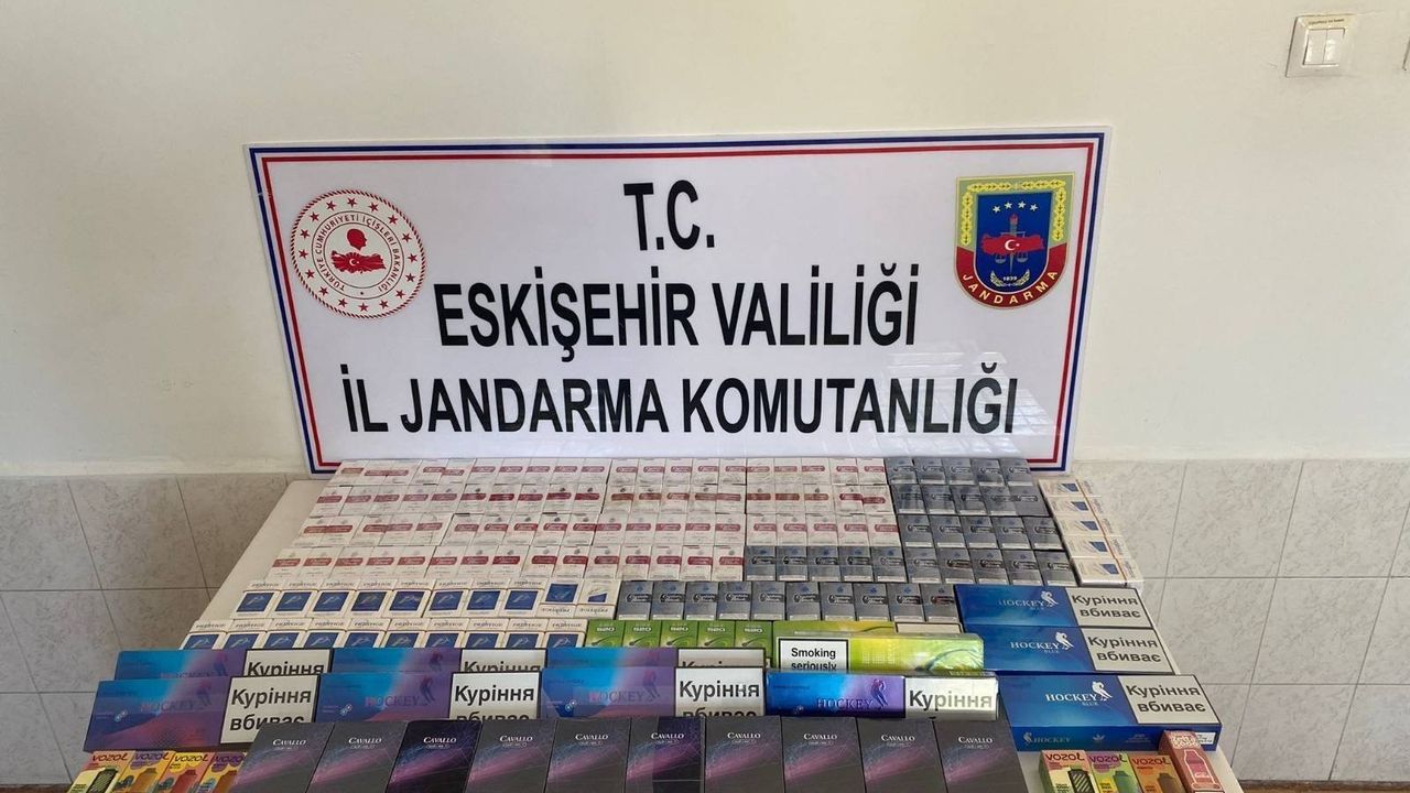 Eskişehir’de jandarma ekiplerinin çalışması sonucunda bir şüphelinin aracında 500 paket bandrolsüz ve hologramsız sigara, 8 adet kaçak elektronik sigara ele geçirildi.