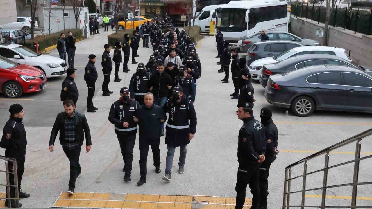 Düzenlenen operasyonlarda gözaltına alınan 1’i kadın 20 şüpheli, geniş güvenlik tedbirleri eşliğinde elleri arkadan kelepçeli şekilde Eskişehir Adliyesi’ne sevk edildi. Diğer 16 şüphelinin, bulundukları illerden Ses ve Görüntü Bilişim Sistemi (SEGBİS) ile ifadelerin alınacağı öğrenildi.