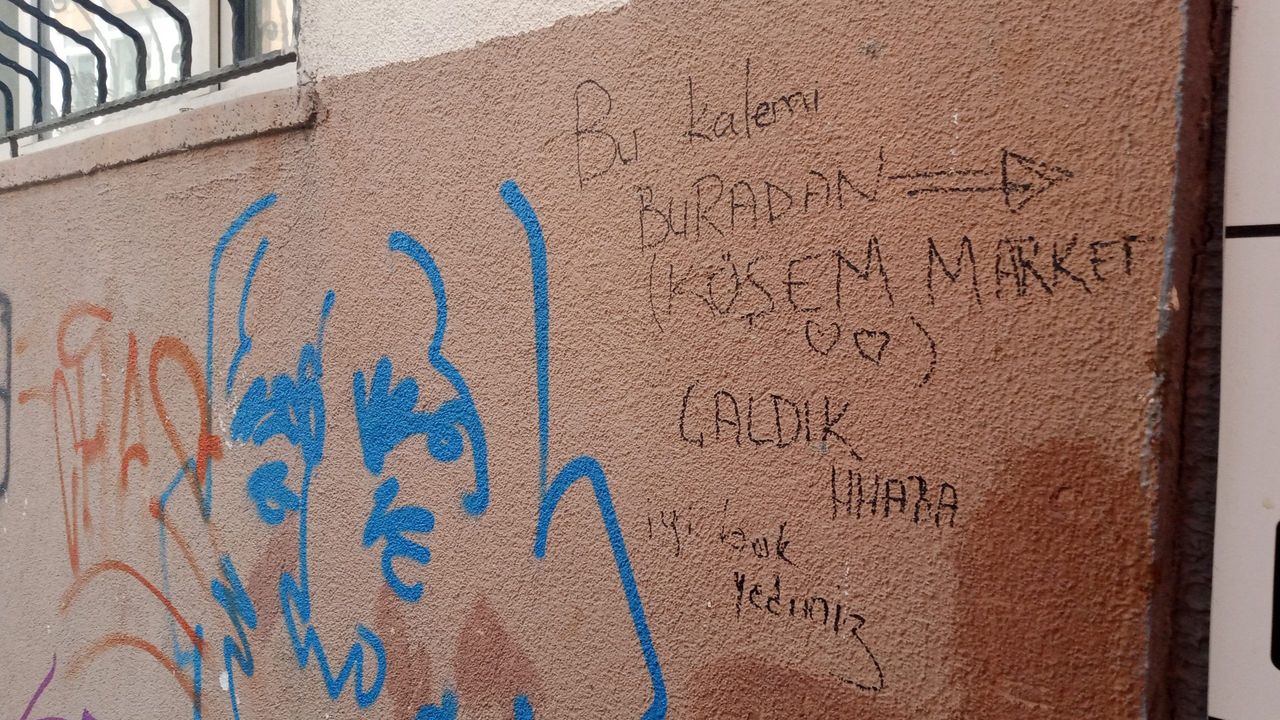 Bildiğiniz trollemişler. Yazının altında bir başka yazı daha var, onu ayrıca yazmışlar. Bu yazıları aynı gün içerisinde yazmıyorlar, ertesi gün tekrar başka bir şey yazıyorlar. Sonradan güvenlik kamerası takdırdık zaten. Ben buradan o kalemi çalanlara seslenmek istiyorum, yazıyı boşverin de kalemi getirin kardeşim. Kalem önemli" dedi.