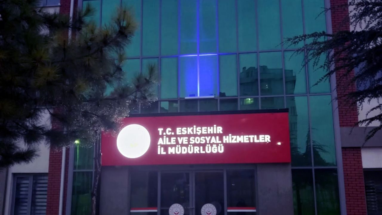 Eskişehir'de 2 Nisan Otizm Farkındalık Günü'nde otizme dikkat çekmek amacıyla Aile ve Sosyal Hizmetler İl Müdürlüğü'nün binalarına mavi aydınlatma yapıldı.