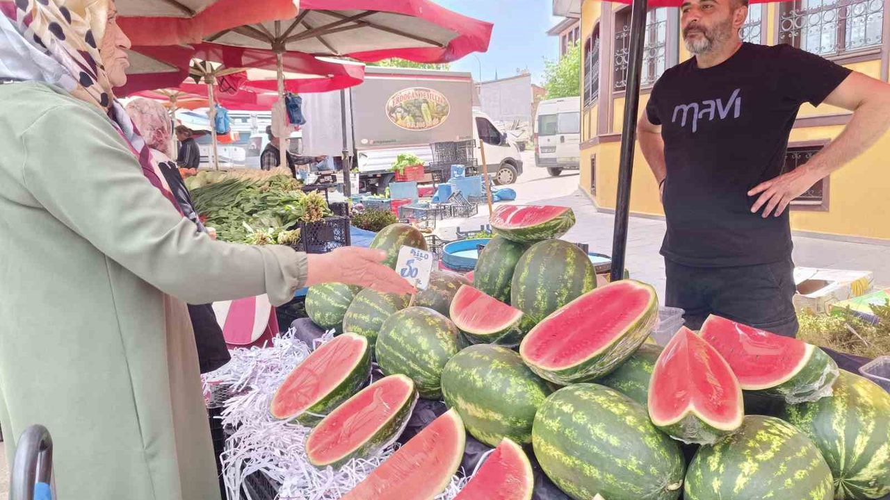Eskişehir’de yaz aylarının vazgeçilmez meyvesi karpuz, kilogramı 50 liradan tezgâhlarda yerini alırken, genelde yarım ya da çeyrek olarak satılıyor.