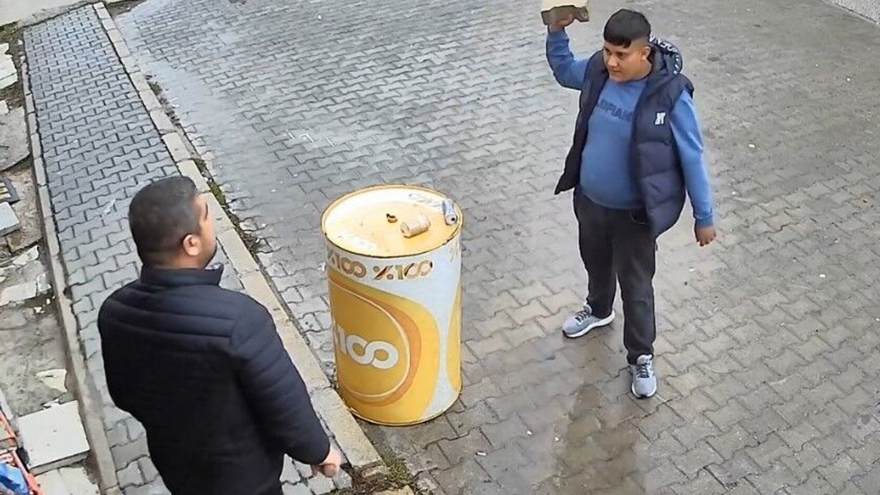 Güvenlik kamerası tarafından anbean kayıt altına alınan olayda, şahıslardan birisinin kavga ettiği A.K.'nin üzerine varil ve masayla birlikte parke taşını fırlatması akıllara durgunluk verdi.