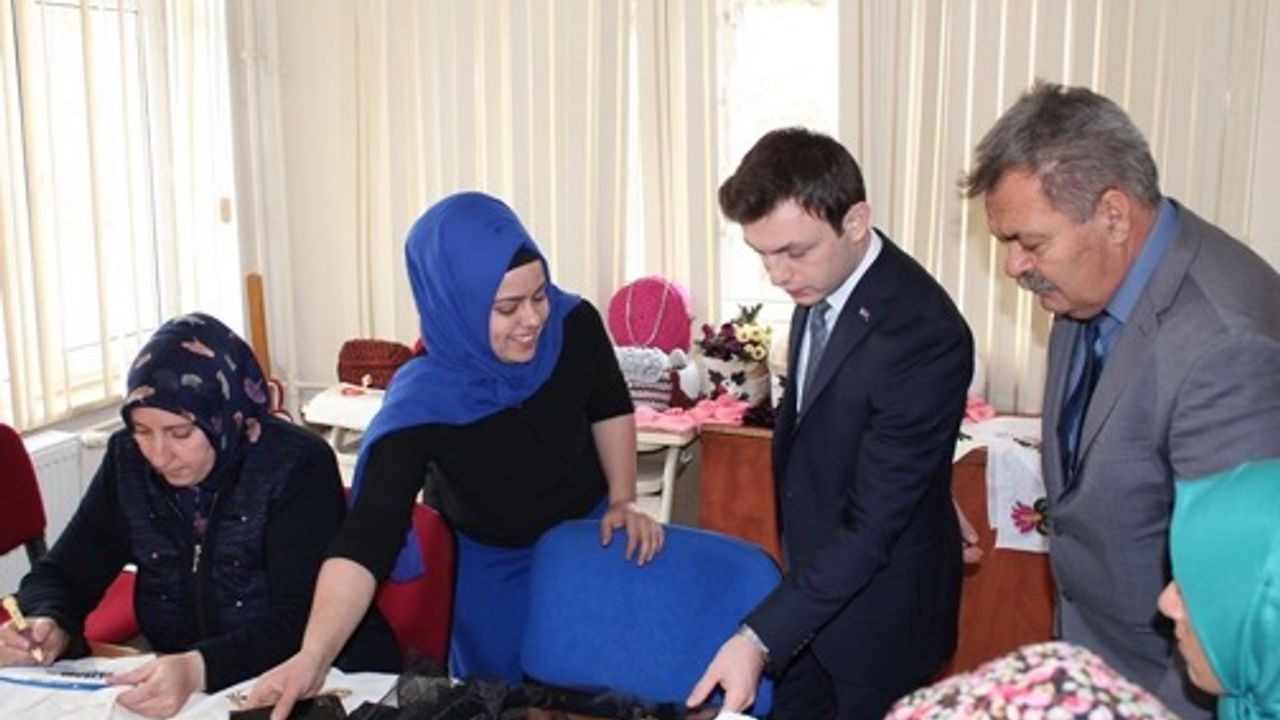 Halk Eğitim Müdürü Turan Kuzucu eşliğinde ziyareti tamamlayan Kaymakam Erdoğan, kursiyer kadınlara başarılar diledi.