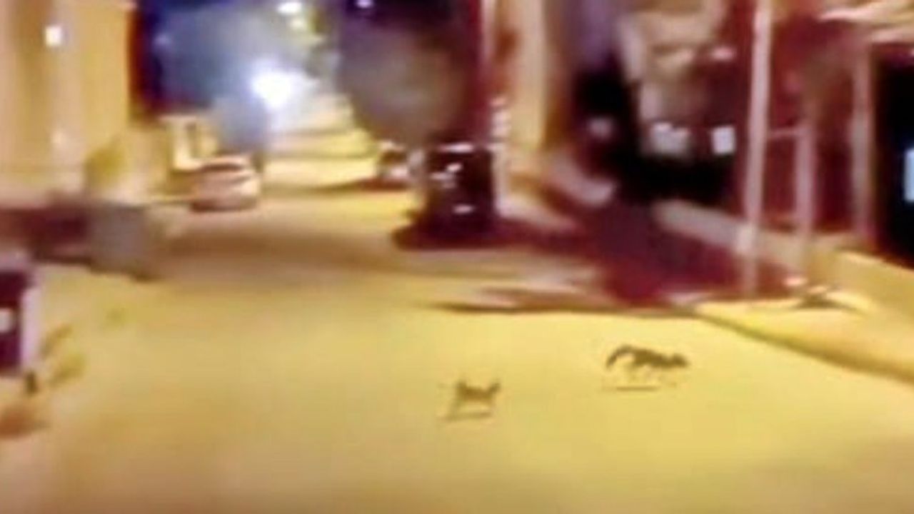 Dün gece yiyecek aramak için 4 Eylül Mahallesinde dolaşan tilki hiç beklemediği anda sokak kedisi tarafından saldırıya uğradı.