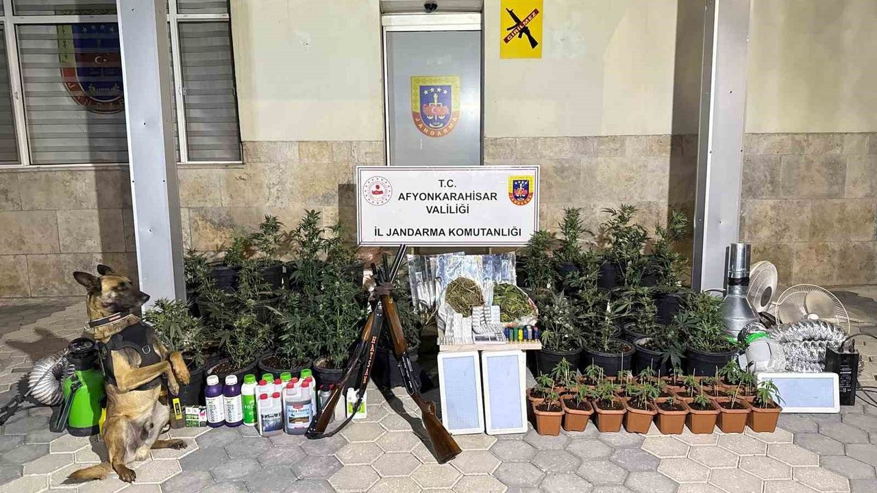 Afyonkarahisar’da evlerine kurdukları mevsimsel iklimlendirme sistemi ile kenevir yetiştiren 2 şahıs bir kilo 407 gram esrar ile 297 adet uyuşturucu hap ile jandarmaya yakalandılar.