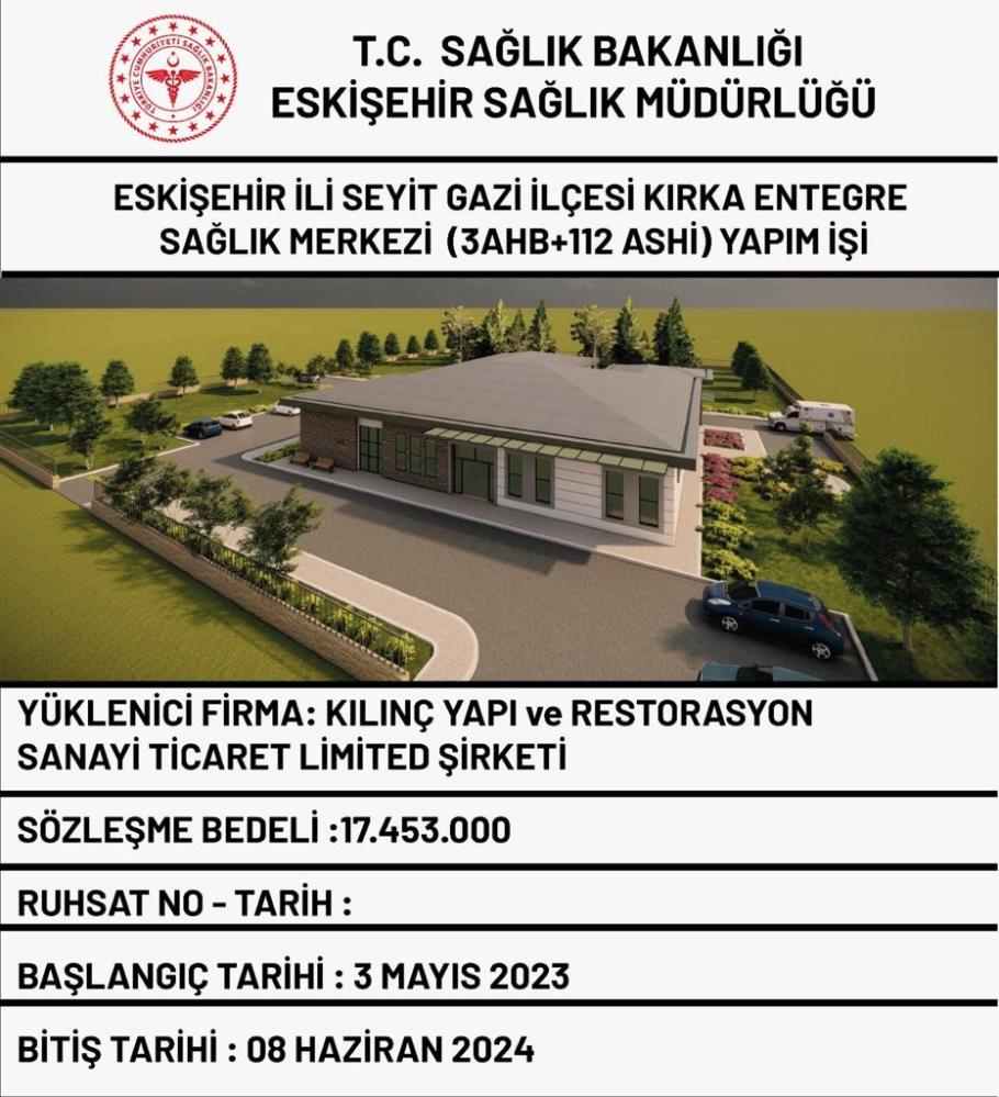 Seyitgazi ilçesi Kırka mahallesine yapılacak olan entegre sağlık merkezinin yer tahsisi ve projesi tamamlanarak, yüklenici firmaya yer teslimi yapıldı.