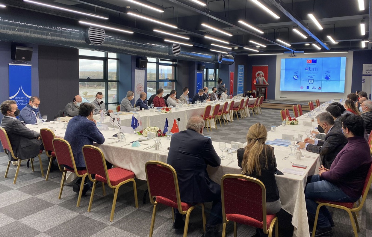 ATAP A.Ş. Genel Müdürü Dr. Sedat Telçeken, ETİM olarak KOBİ’lerin ihtiyaçlarını karşılamak üzere hazır olduklarını aktararak, “Projemiz bildiğiniz üzere Eskişehir TGB yönetici şirketi ATAP A.Ş. tarafından 2020 yılından beri yürütülmektedir. 3 Şubat’ta KOBİ’lerimizin kapasitelerini geliştirmeye yönelik olarak 7 farklı başlık altında 15 modülde teknik ve teknik olmayan eğitimlere başlamıştık. Bu eğitimler 17 Mart’a kadar devam ediyor olacak. Bununla birlikte projemizin önemli bir göstergesi olan 5 pilot projenin seçimi ve bunlara yönelik olarak ETİM’in desteğinin detaylandırılacağı bu toplantı bizler için çok önemlidir. Projelere ilişkin olarak KOBİ’lerimizin ihtiyacı olan mühendislik-tasarım-prototipleme konularında ETİM olarak uzmanlarımızla ve makine parkımızla bizler hazırız” dedi.