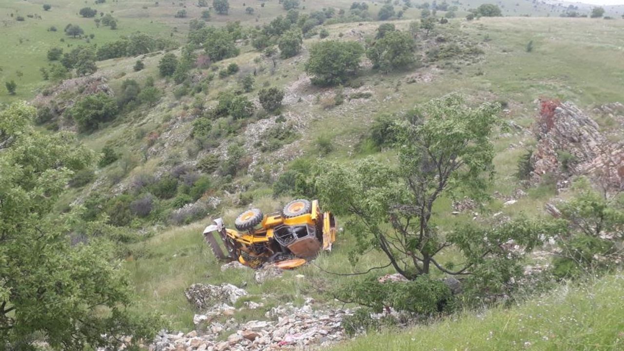 Afyonkarahisar yolunda kontrolden çıkan iş makinesi yaklaşık 50 metreden uçuruma devrildi. Olayda iş makinesinin operatörü kendisini son anda yere atarak kurtardı.
