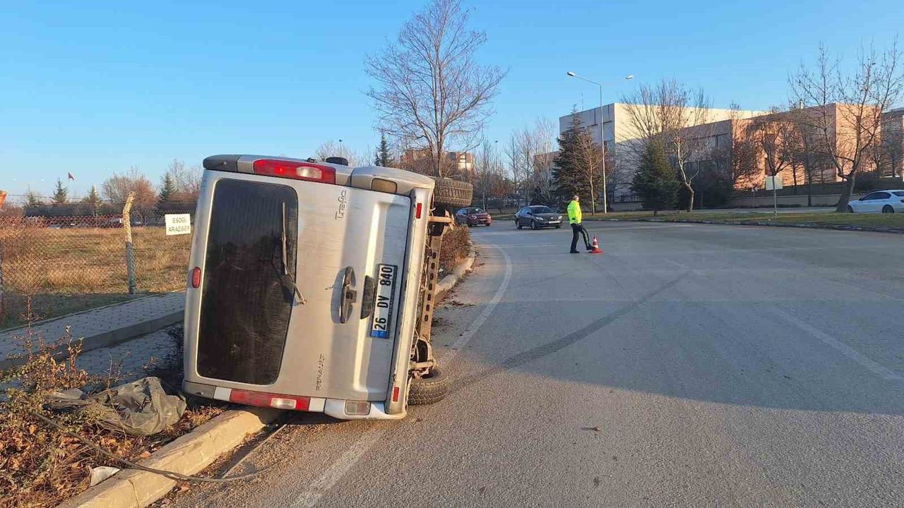 Eskişehir’de viraja hızlı giren minibüs, sürücüsünün direksiyon hakimiyetini kaybetmesi sonucu kontrolden çıkarak devrildi.