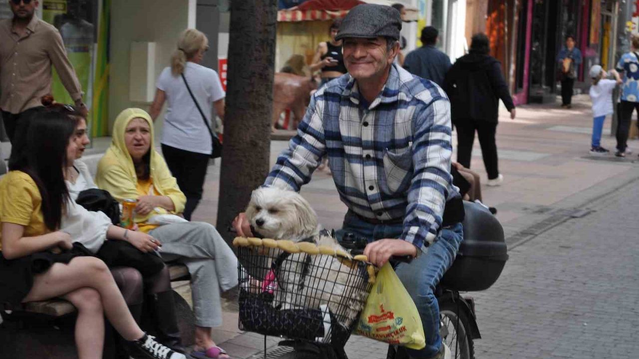 Eskişehir’de güzel havayı fırsat bilen vatandaşlar zamanlarını dışarıda değerlendirirken, kentin en işlek noktalarından olan İsmet İnönü Bulvarı üzerinde bir bisikletli vatandaş sepetinde gezdirdiği köpeği ile dikkat çekti. Yabancı uyruklu olduğu öğrenilen adam şehir içerisinde dolaşırken bir an olsun yanından ayırmadığı köpeği ile odak noktası olurken, görenleri gülümsetti. Çevredeki birçok vatandaş o anları cep telefonu kameraları ile kayıt altına aldı.
