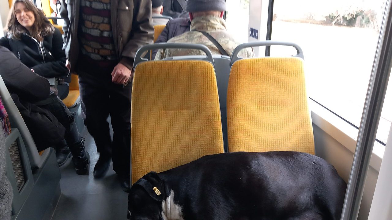SSK - Otogar hattı istikametine giden tramvaydaki yolcular, ‘’Mışıl mışıl koltukta uyuyan sevimli siyah köpeği çok sevdik ve ellerimizle okşayarak uyumasına yardımcı olduk. Uykusuz kalmış sevimli siyak köpek, uyusun, uykusunu alsın ve rahat etsin. Bizler ayakta yolculuk yapmaya razıyız. Bizler hayvanları korumalıyız, sevmeliyiz ve gelecek nesillerimize davranışlarımızla örnek olmalıyız’’ dediler.