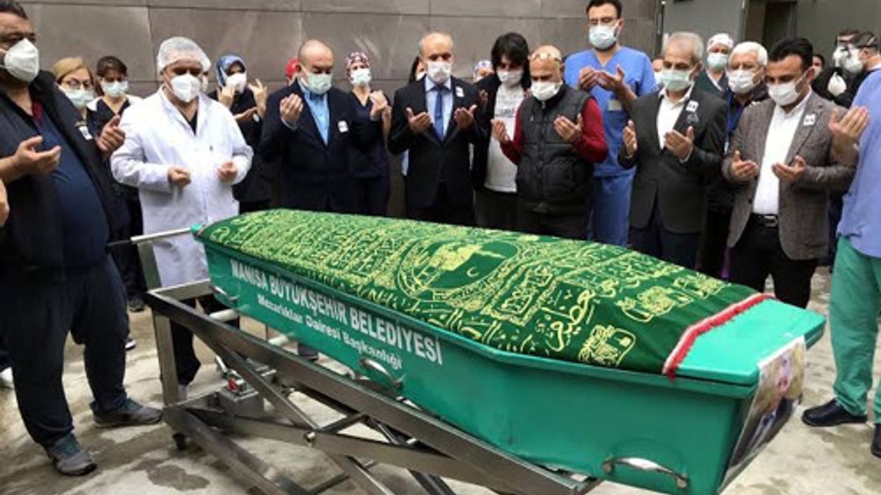 Manisa'da koronavirüsten yaşamını yitiren sağlık memuru Ahmet Erkuş (64) için, görev yaptığı Manisa Şehir Hastanesi önünde tören düzenlendi. Merhum Erkuş'un cenazesi, törenin ardından memleketi Eskişehir'e getirilecek.