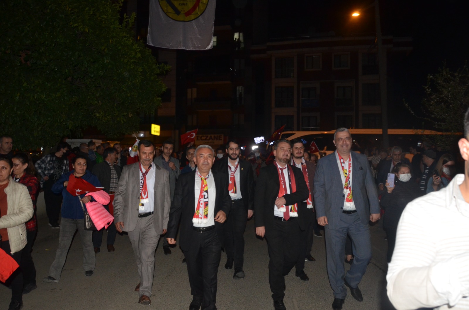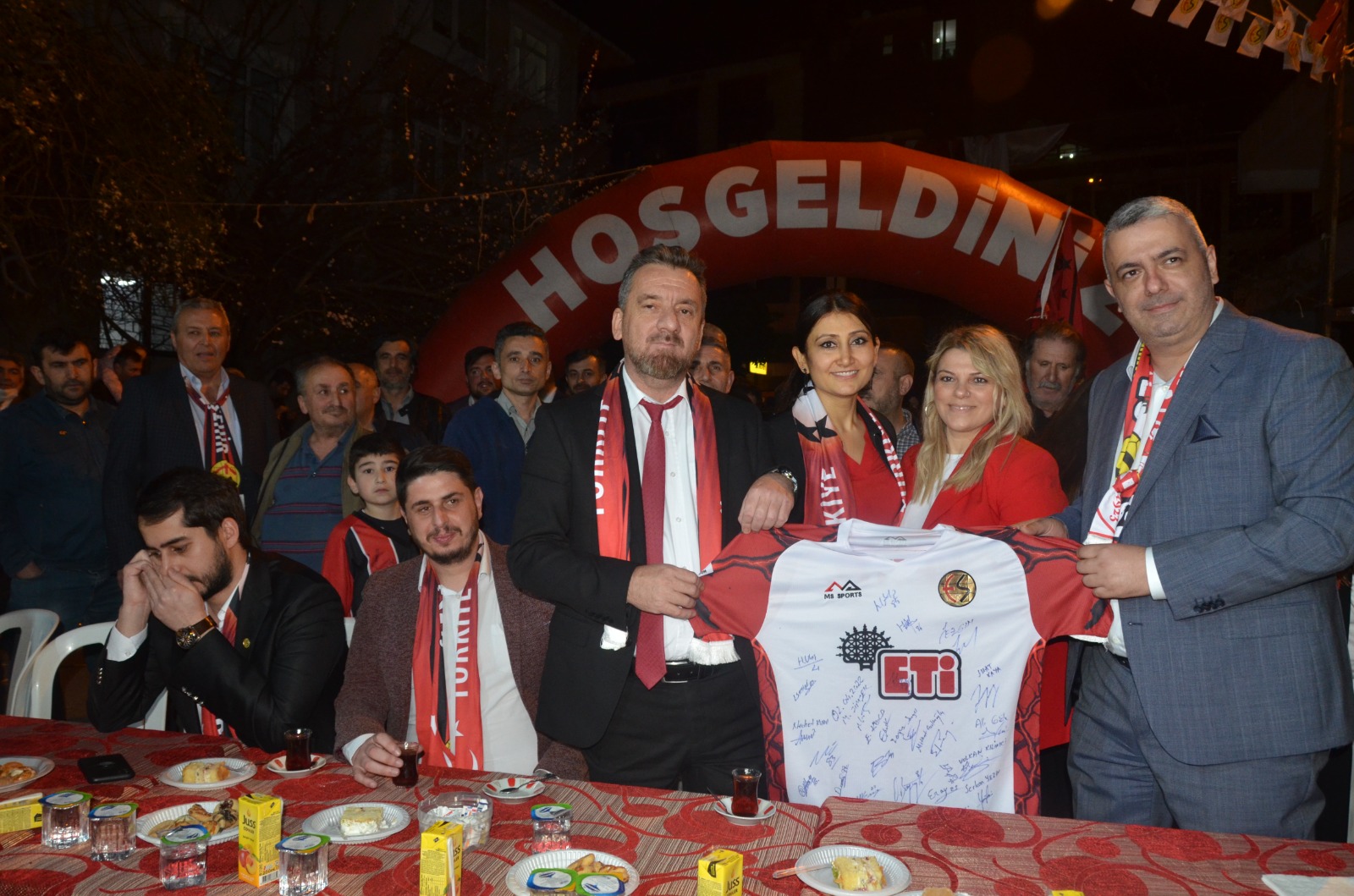 İftar yemeğinin ardından Eskişehirsporlu Futbolcular Kartal Eskişehir Mahallesinde kendilerini binlerce Eskişehirli meşaleler ve ES ES Marşları ile coşkuyla karşıladılar. ES ES Pastası kesildi. ES ES Formaları futbolcular tarafından imzalandı..