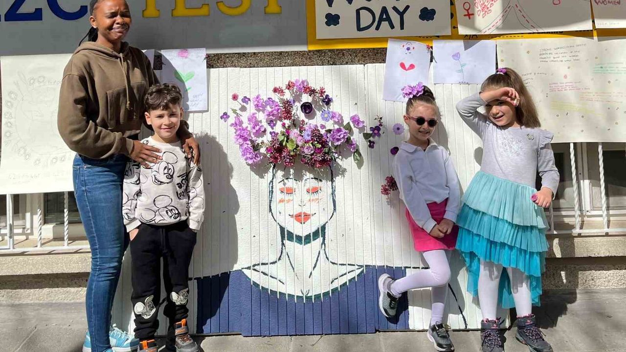 Eskişehir’de özel bir İngilizce kursunun öğrencileri 8 Mart Dünya Kadınlar Günü’nde çiçekler ile kadın tablosu oluşturdu.