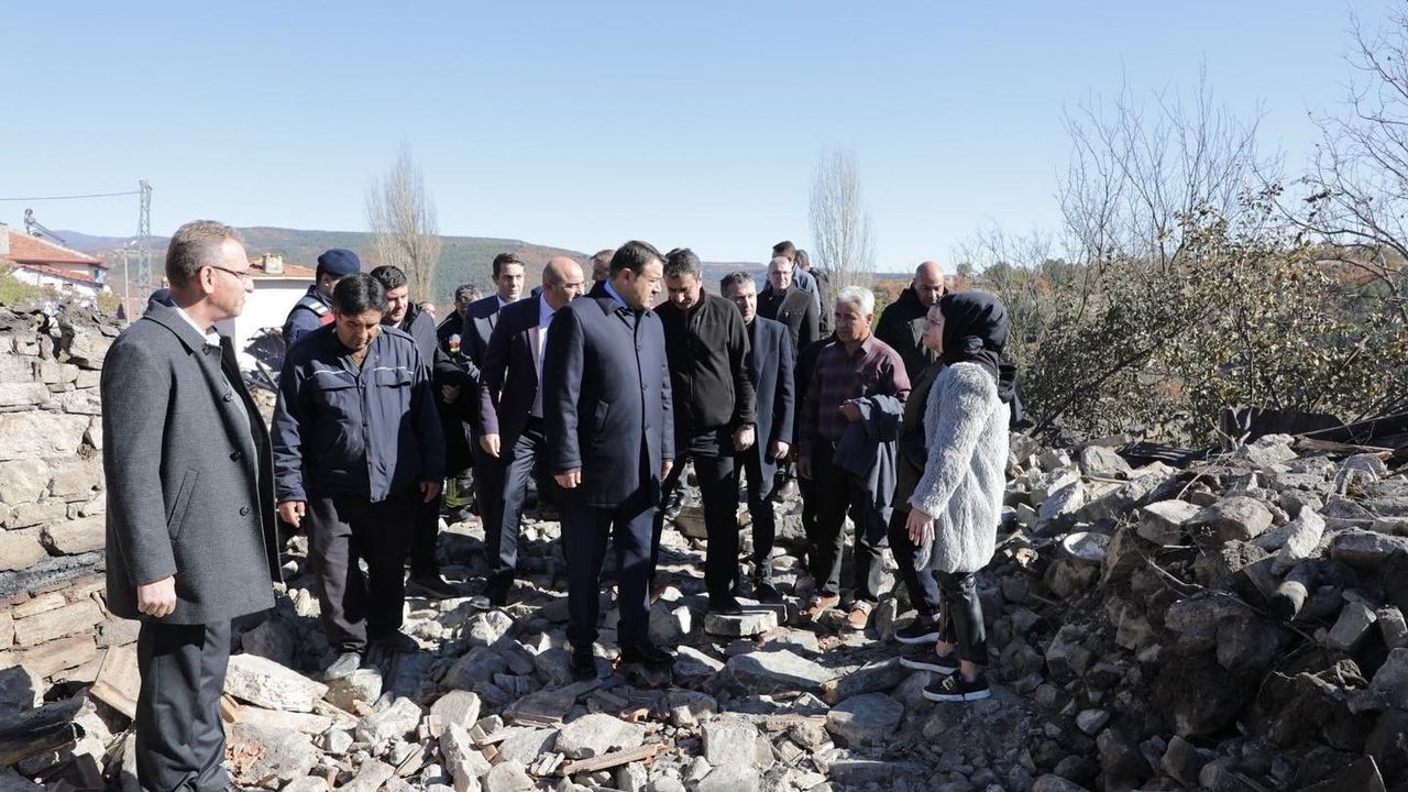 Kütahya Valisi Musa Işın, 7 ev ve 4 hayvan barınağının yandığı Tavşanlı ilçesine bağlı Kızılçukur köyünde incelemelerde bulundu. Yangının, bahçeye dökülen soba külü sonucu başladığı bildirildi.