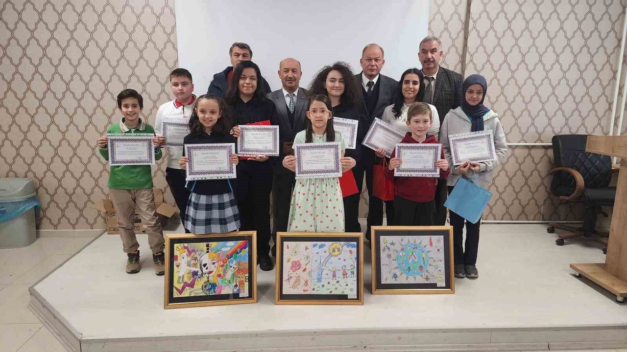 Konuşmaların ardından, resim, şiir ve kompozisyon dallarında düzenlenen yarışmalarda dereceye giren öğrenciler ödüllerini protokol üyelerinin elinden aldı. Tören sonunda, protokol üyeleri, ödül kazanan öğrencileri tebrik ederek başarılarının devamını diledi.