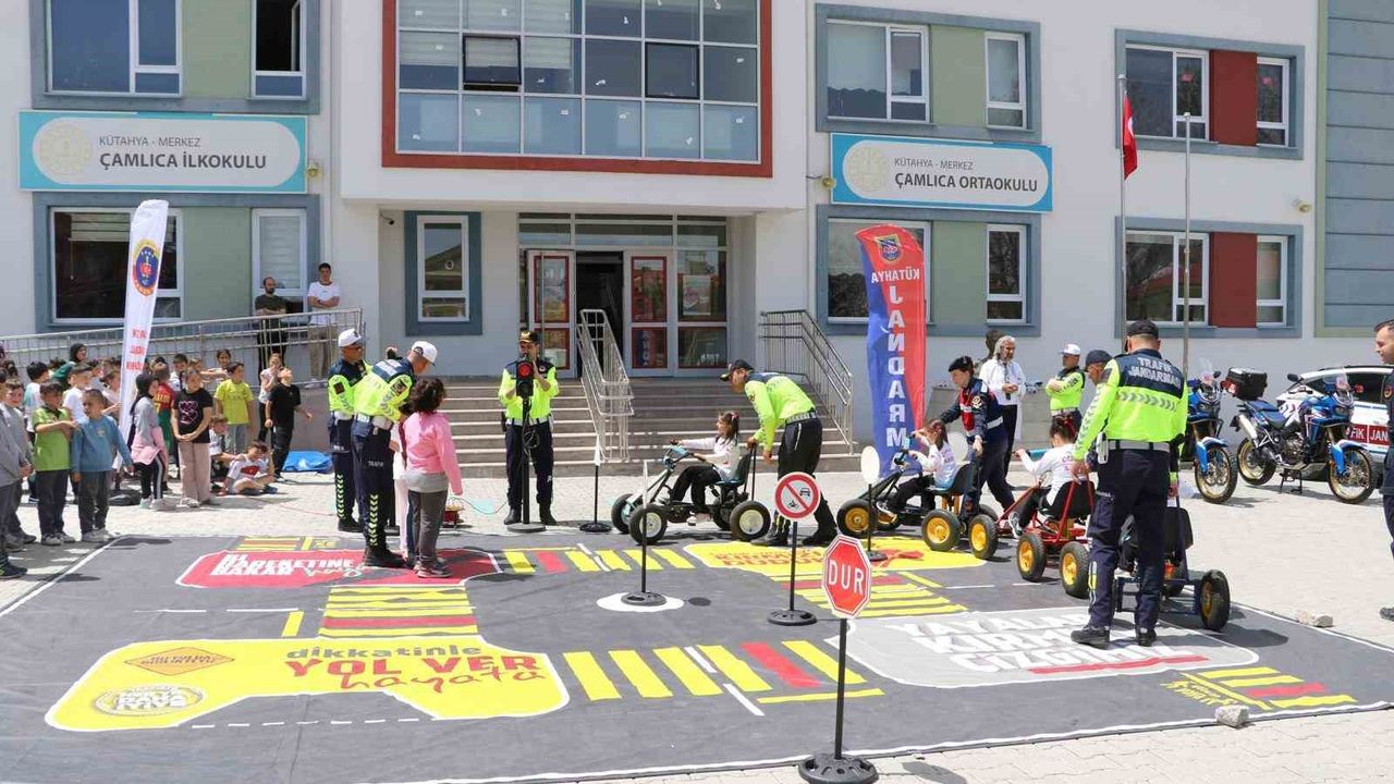 Kütahya’da ’Trafik Haftası’ etkinlikleri çerçevesinde jandarma ekipleri tarafından öğrencilere trafik eğitimi verildi.