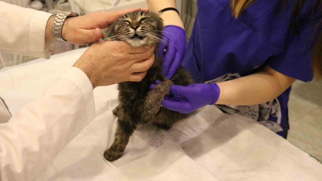 Kedinin tedavi süreci hakkında bilgi veren Veteriner Hekim İlayda Ulus, "Kedi saat 4 gibi geldi kedimiz. Bacağı aşırı derecede şişmiş, ödenmiş şekilde geldi. Biz ilk başta kırık sandık. Ama muayene ettiğimizde 4-5 kere bağlanacak şekilde lastiğin burasını boğmuş olduğunu gördük. Bu bilinçli şekilde yapılmış. Dolaşım bozmak adına. Kimin yaptığını bilmiyoruz. Hasta sahibimiz getirdi çok üzülerek. Biz de tedaviye başladık şu anlık. Sokak kedisi, birisi sadece dükkanında bakıyormuş, gidip geliyormuş. Bir haftadır yokmuş kedisi. Aramışlar, birisi haber vermiş tasmasından bularak o şekilde geldi. Oradaki tüyleri özellikle tıraş ettik. Ölü dokuları aldık. Baya bir kan toplamış ve ölü dokular birikmiş. Onları temizledik, tıraş ettik. Antibiyotik tedavisine başladık. Şu anda sabah akşam olacak şekilde krem sürüyoruz. Yarın tedavisi yapıyoruz. Oradaki kan akımını hızlandıracak kremler, özellikle fizik tedaviler uyguluyoruz. Şu anda 3-4 gün takip edeceğiz. Eğer iyileşme görmezsek amputeye doğru gidebiliriz. Şu anda sol ön ayağını kaybetme ihtimali var. Birkaç kere böyle tasma boğulmuş şekilde geldi, boyundan yara almış kediler. Başka tekme çok geldi, göğüs kırıkları. Bu tür vakaları gördük. Onların ağzı var, dili yok. Bizden daha daha masumlar. Bu şekilde olması bizi çok üzüyor, derinden üzüyor. Hayvan sevmeyen, insan sevemez. Bu şekilde çok daha duyarlı ve dikkatli olmalarını bekliyoruz" dedi.