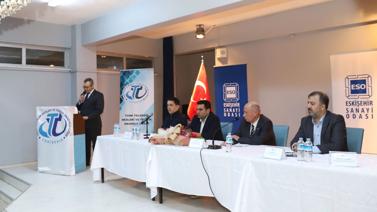 ESO Danışmanı Bekir Şahin Tütüncü, TOBB Eskişehir Genç Girişimciler Kurulu Başkanı Yusuf Melih Turan, TOBB Eskişehir Genç Girişimciler Kurulu İcra Kurulu Üyesi ve Turmet Madencilik Genel Müdürü Umut Rallas, Bewell Teknoloji Sanayi Genel Müdürü Taşkın Kızıl’ın katıldığı ‘Genç Girişimciler Yetişiyor; Sanayi-Meslek Lisesi İş Birliği” buluşması okulun konferans salonunda gerçekleştirildi.