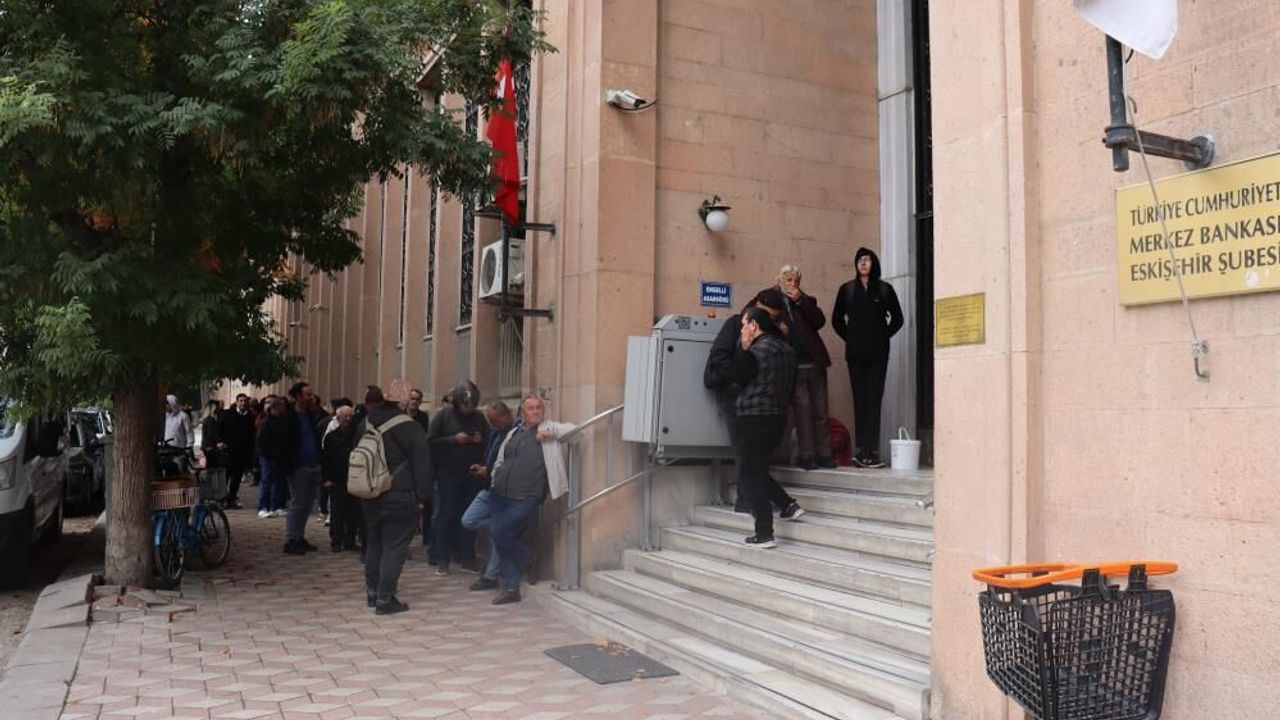 Eskişehir’de vatandaşlar, erken saatlerde geldikleri Merkez Bankası önünde metrelerce madeni para kuyruğu oluşturdu.