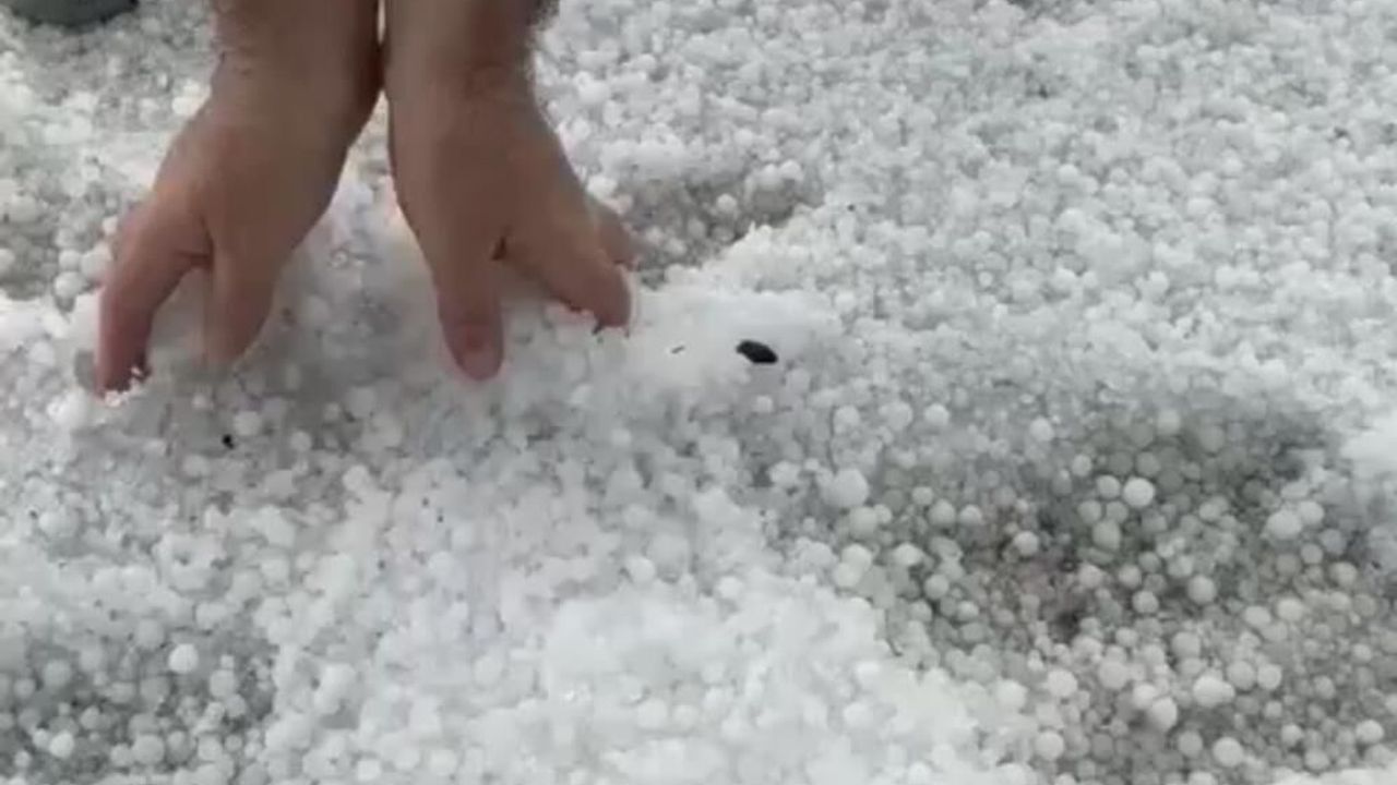 Yağışla birlikte yerler beyaza bürünürken, mahallede yaşayan vatandaşlar avuçladıkları dolu parçalarını sosyal medyada paylaştı.