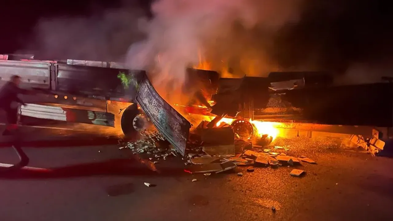 Kütahya'nın Tavşanlı ilçesinde mermer yüklü tırın dorsesi alev alev yandı.