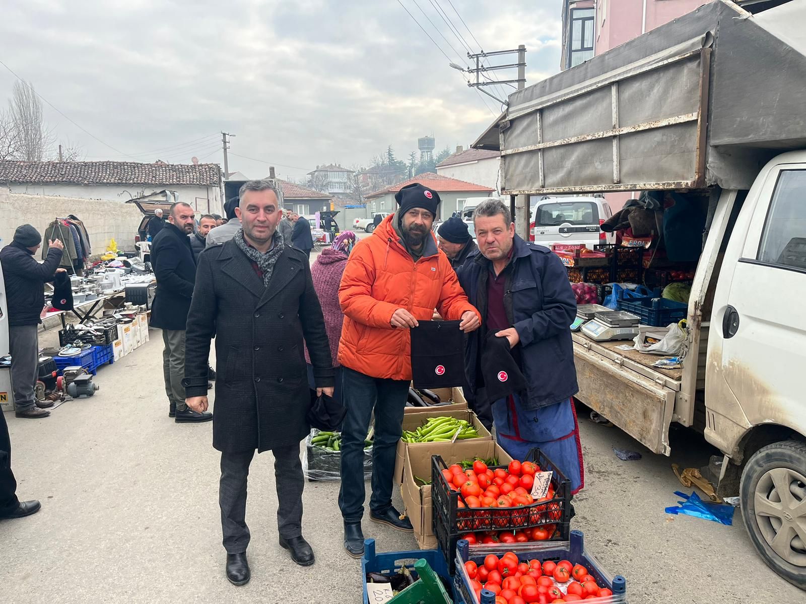 Çalışma hakkında bilgi veren İlçe Başkan Yardımcısı Suat Ziyalı “soğuk kış günlerinde pazarcı esnafımızı ziyaret ederek Türk Bayraklı şapka dağıtımı yaptık. Hem sorunlarını dinledik hem de hayırlı ve bereketli işler diledik" dedi.
