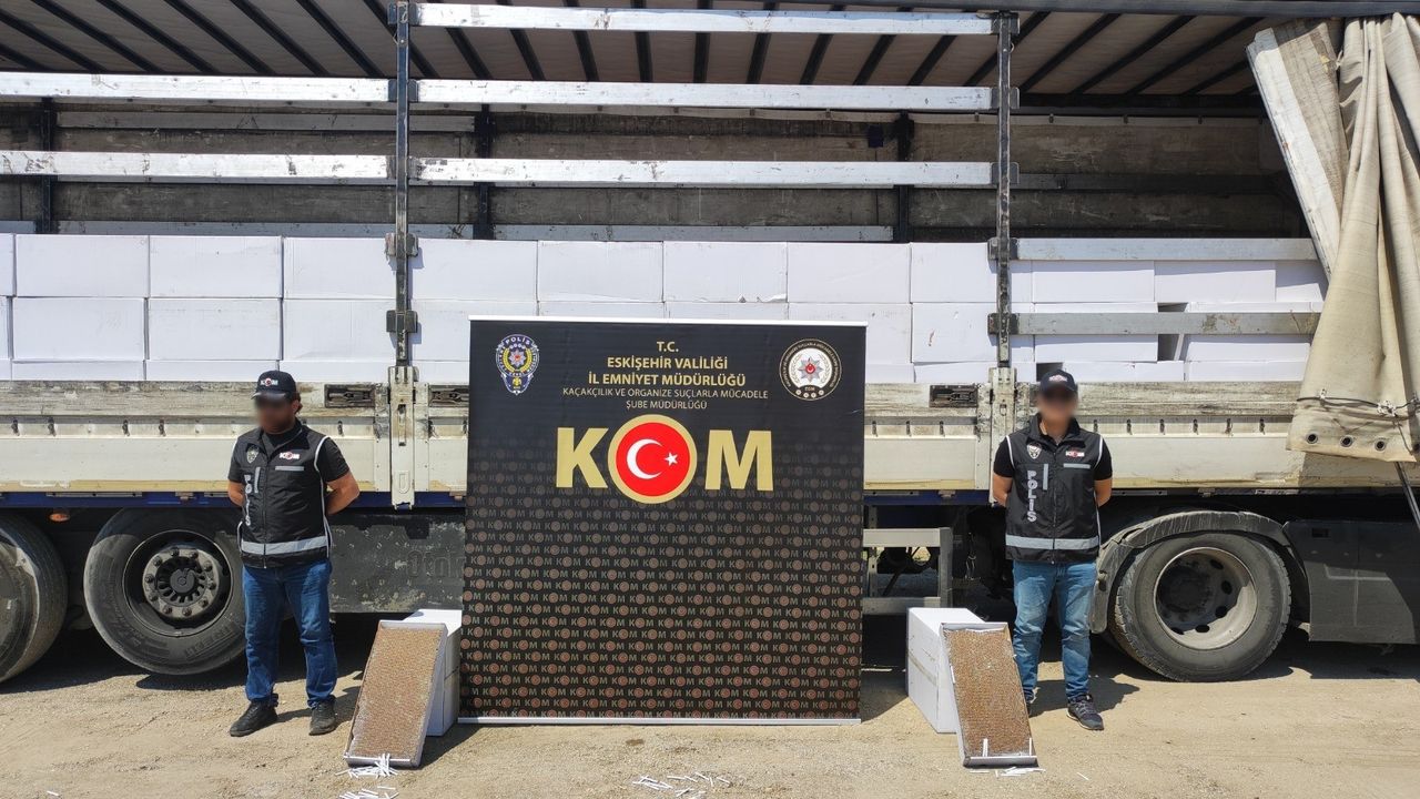 Eskişehir’de polis ekiplerince başlatılan çalışmalar sonucunda çekici ve dorsesinde 4 milyon dal bandrolsüz sarılmış sigara olduğu belirlenen şahıs adli mercilere sevk edildi.