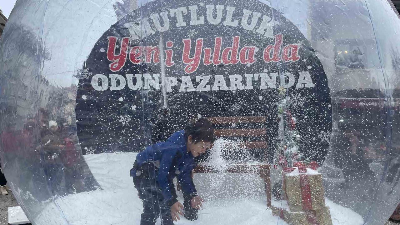 Eskişehir Odunpazarı’nda yılbaşı etkinlikleri kapsamında kurulan kar küresi çocukların yoğun ilgisiyle karşılaştı.