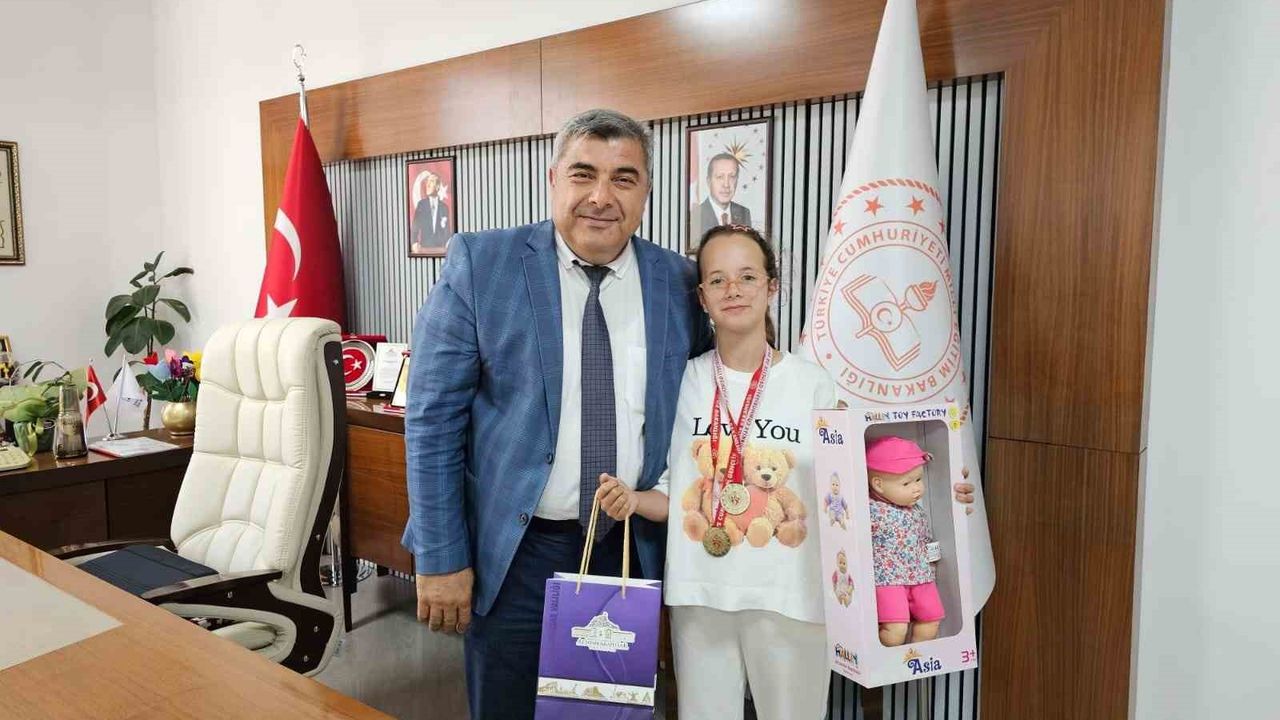 Otizm yıldız kızlar kategorisinde Türkiye Şampiyonu olan Afyonkarahisar Ekrem Yavuz Ortaokulu öğrencisi Defne Öykü Atılgan’ı, İl Milli Eğitim Müdürü Miraç Sünnetci makamında ağırladı.