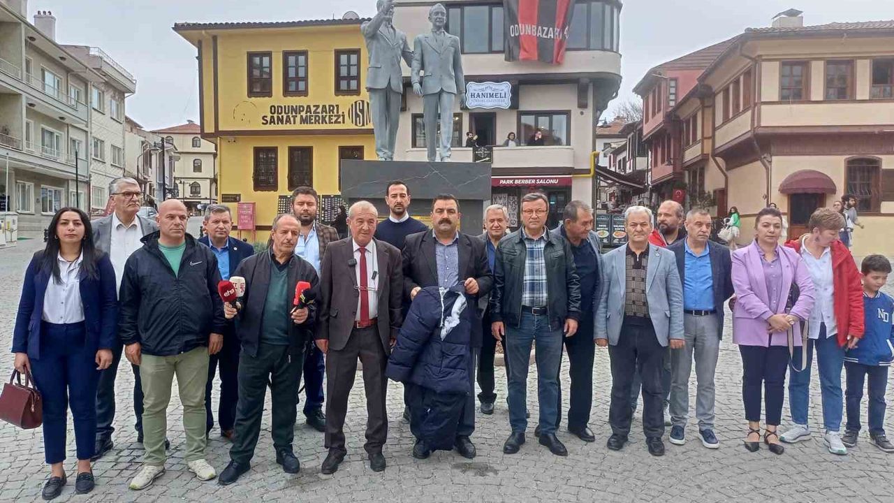 Odunpazarı Muhtarlar Derneği üyeleri, önceki gün özel mülk olan araziye çöp ve inşaat malzemesi dökülmesine engel olmaya çalışırken darp edilen Orhangazi Mahallesi Muhtarı Hüseyin Erdemir’e destek olmak için basın açıklaması yaptı.