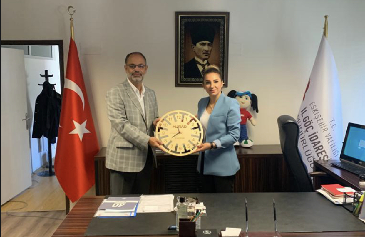 Müstakil Sanayici ve İş Adamları Derneği (MÜSİAD) Eskişehir Şubesi Başkanı Hakan Duman, Başkan Yardımcıları Gökhan Çalışkan, Av. Oğuz Özdemir Yönetim Kurulu Üyelerimizden Hüsamettin Sarı ve üyelerimizden Aziz Karagöz, Murad Muhandıs ve Vedat Akbıyık Eskişehir İl Göç İdaresi Müdürlüğüne yeni atanan Hande Tuzkan Yeşilyurt hanımefendiyi makamında ziyaret ederek yeni görevin hayırlı olması dileklerinde bulunarak başarılar dilediler.